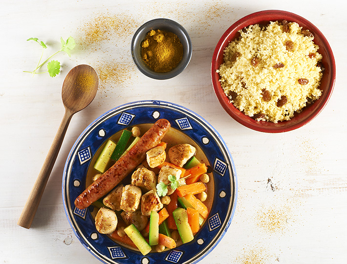 Évadez vos papilles dans les pays Maghrébins en réalisant notre recette internaute, le Tajine de poulet aux courgettes accompagné de son délicieux couscous
