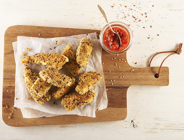 Découvrez une recette simple mais originale de filets de poulet panés, avec une chapelure aux des graines de lin, de sésame et de pavot.