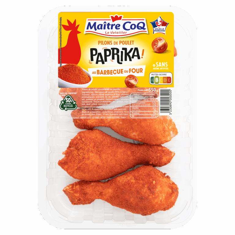 Découvrez nos pilons de poulet au paprika, idéals au barbecue s’il fait beau ou au four en cas de mauvais temps. Existe aussi à la mexicaine ou aux herbes de Provence.